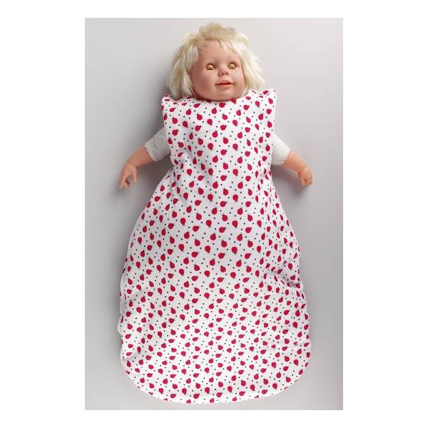 Kojenecký spací pytel v délce 60 cm, spací pytel je ušitý ze 100% bavlny a uvnitř je vyplněný dutým vláknem. Obě ramínka jsou rozepínací pomocí druků a po straně spacího pytle je zip. Spací pytel je možné celý rozepnout a pohodlně do něj miminko zapnout - bez prostrkování ručiček apod. Praní na 40° C. Vyrobeno v ČR.